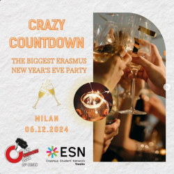 Get ready to end the year in unforgettable style! Since 2009, the ESN has gathered in Milan for the Crazy Countdown to celebrate the Anticipated Erasmus New Year’s Eve a bit earlier... ESN style!